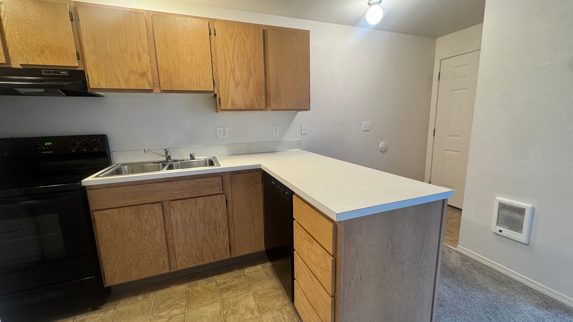 • Dishwasher, refrigerator, and modern finishes