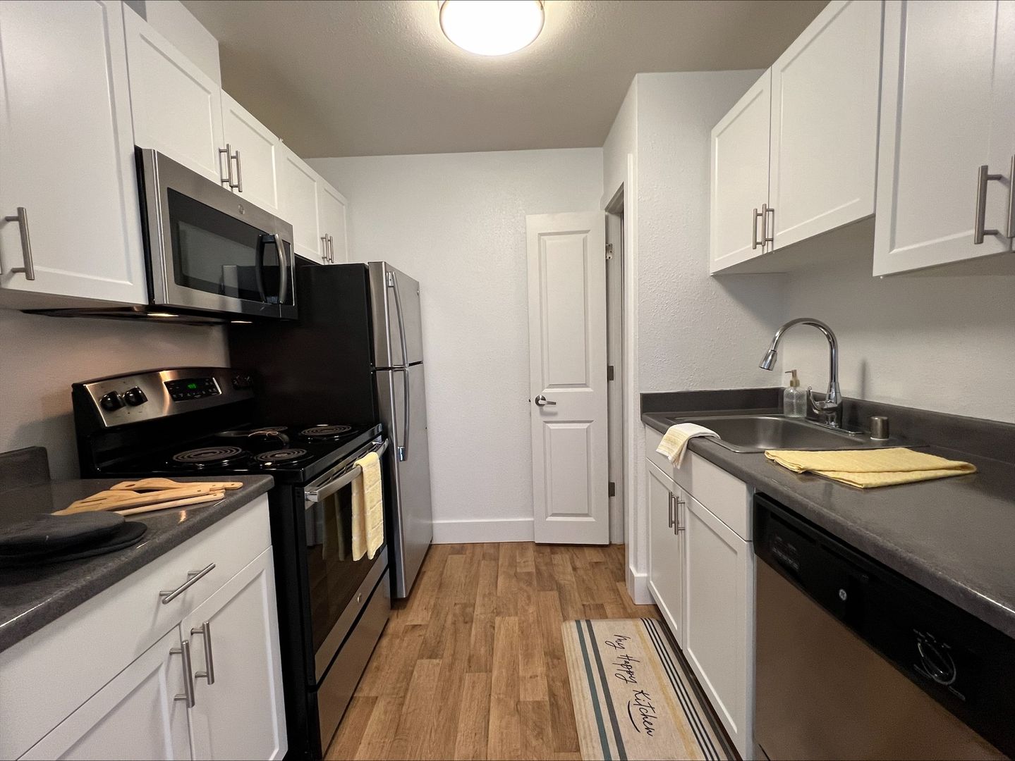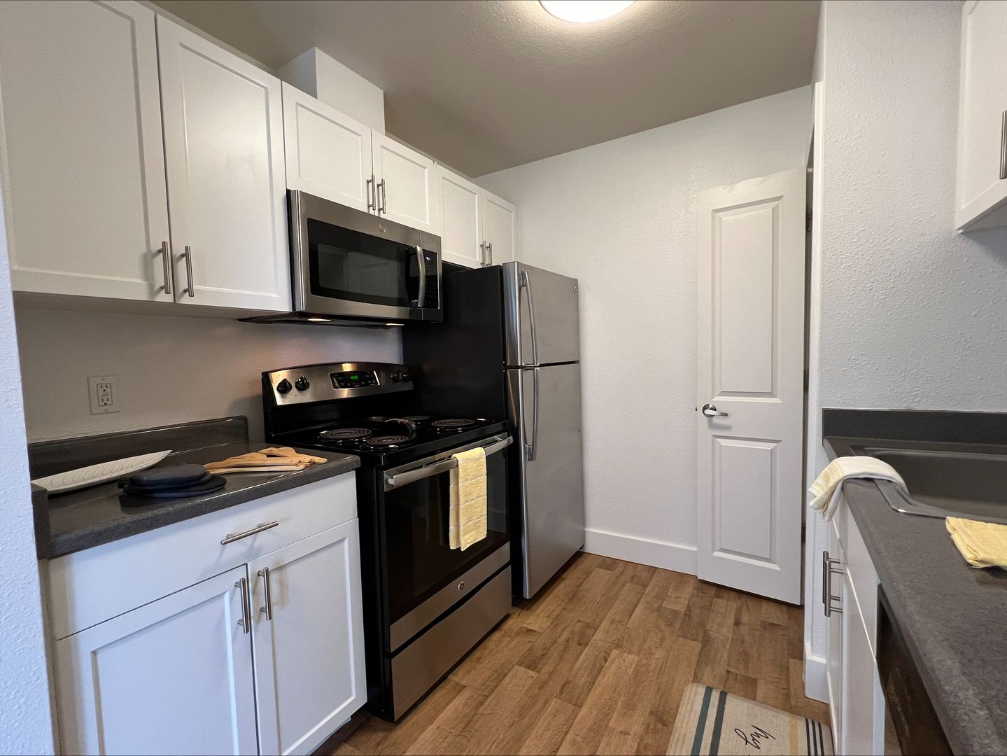 This unique community combines mid-century modern style with modern conveniences. Each apartment home features updated stainless steel appliance like, dishwasher, microwave, soft-close cabinetry, and ample closet space. The community is pet-friendly and includes an on-site Bark Park.
