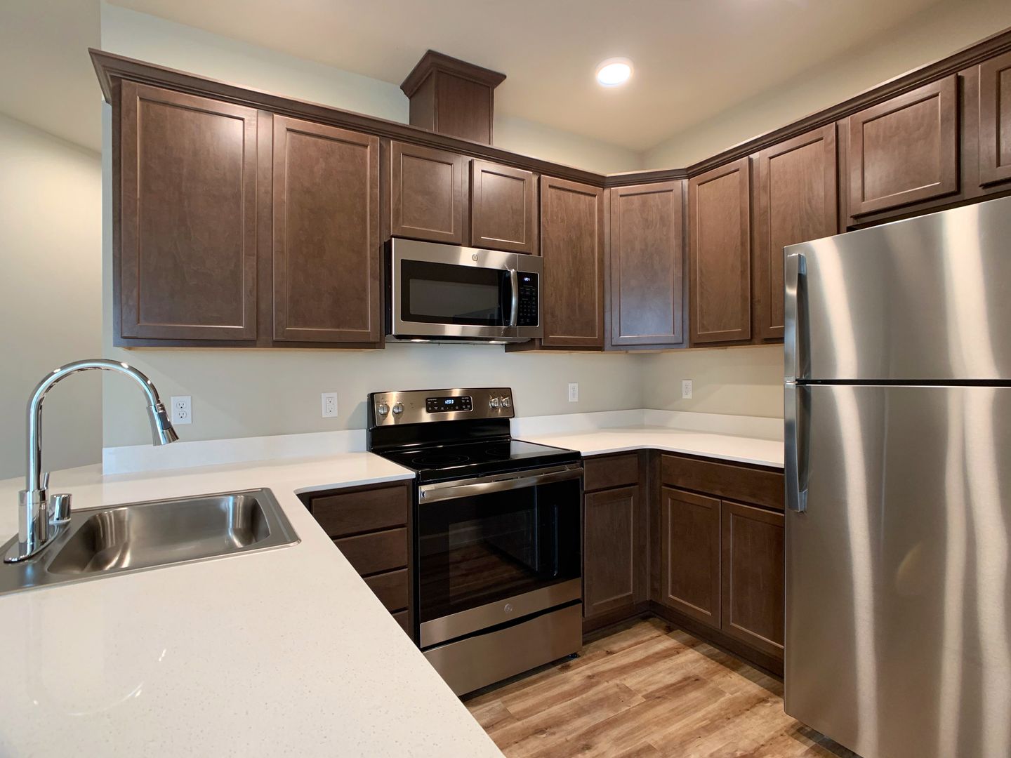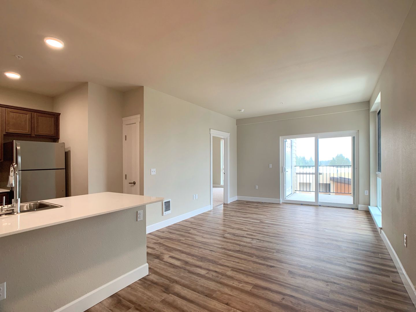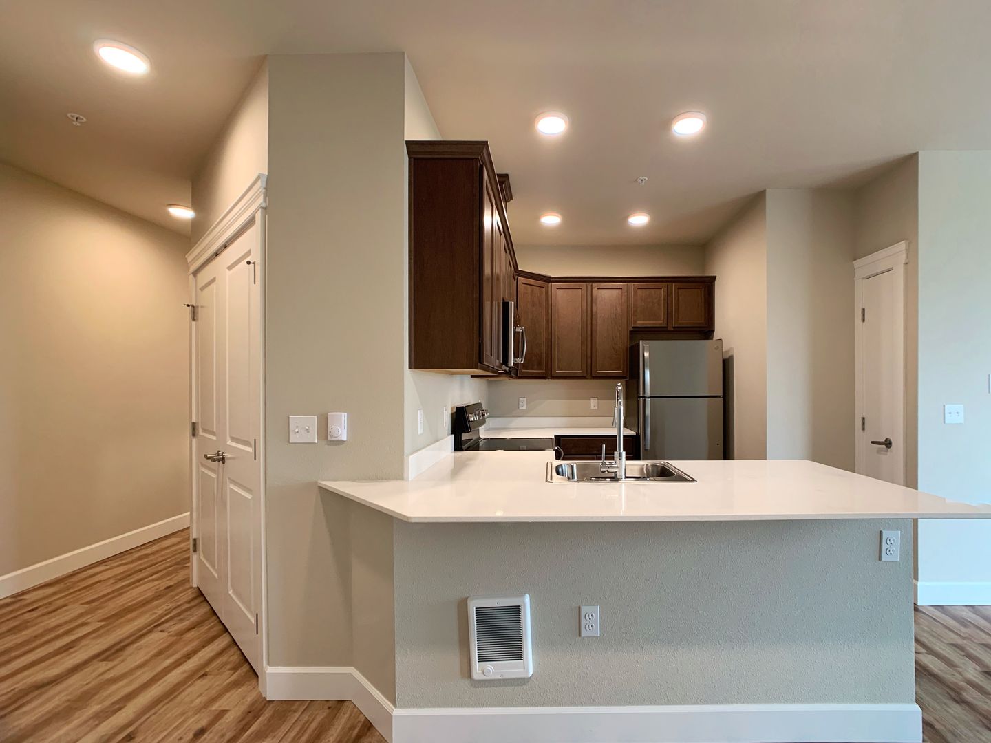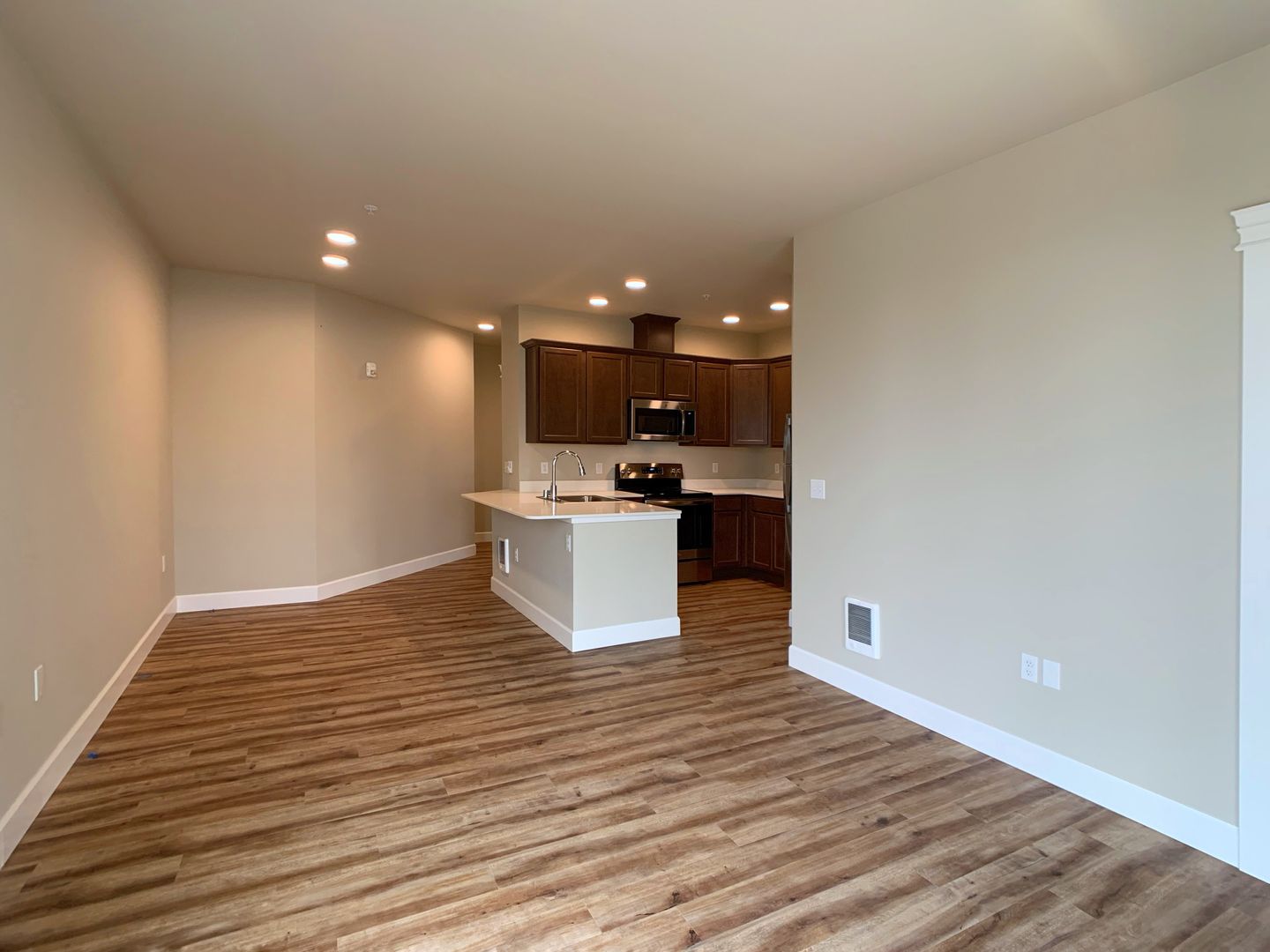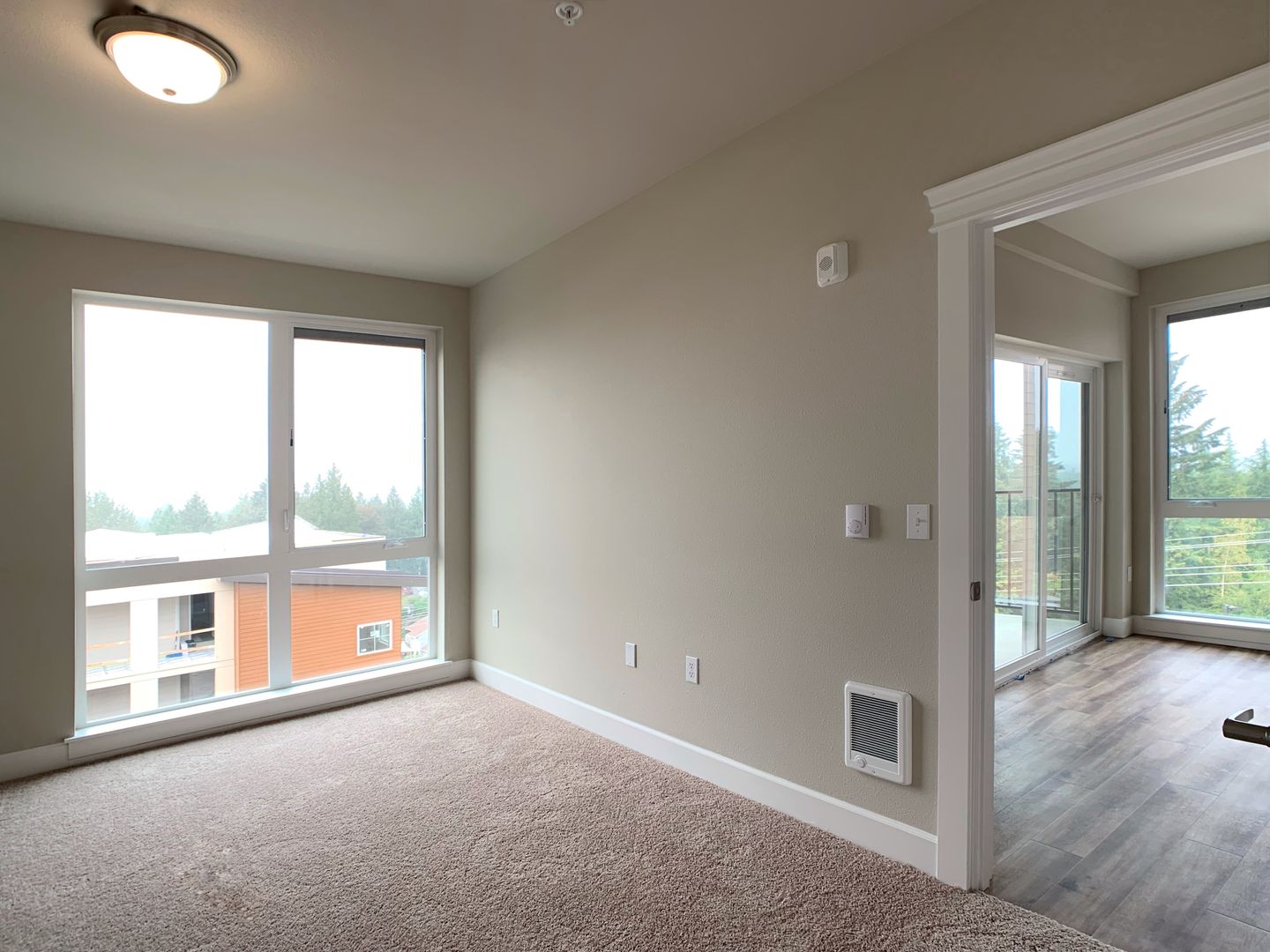 Discover the perfect blend of luxury and convenience in this stunning top-floor two-bedroom, two-bathroom apartment on Tumwater Hill. With breathtaking views and high-end finishes, this home offers an elevated living experience. The spacious layout features soaring 10-foot ceilings, floor-to-ceiling windows that flood the space with natural light, and a private balcony with an additional storage closet. The modern kitchen boasts quartz countertops, stainless steel appliances, and designer fixtures, while luxury vinyl plank flooring runs throughout the apartment with plush carpet in the bedrooms. A stackable washer and dryer are included for ultimate convenience.