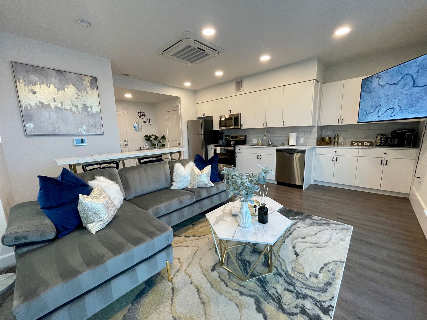 Need a change of scenery while working from home? Our resident lounge offers high-speed internet, a fully equipped kitchen, and an 85-inch Smart TV perfect for both productivity and relaxation!
